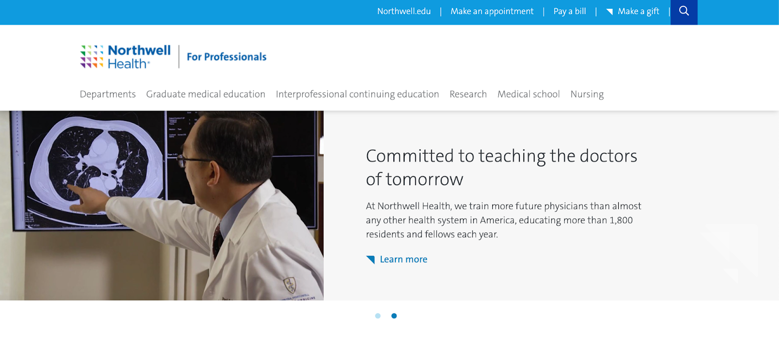 As the largest health system in New York, Northwell Health for Professionals exemplifies the transformative impact of education in the healthcare field. Our collaboration with Northwell involved showcasing their commitment to educating current and future healthcare professionals. With over 160 residency and fellowship programs, as well as various continued medical and professional education opportunities, the website acts as a comprehensive resource for professionals across a wide variety of specialties.