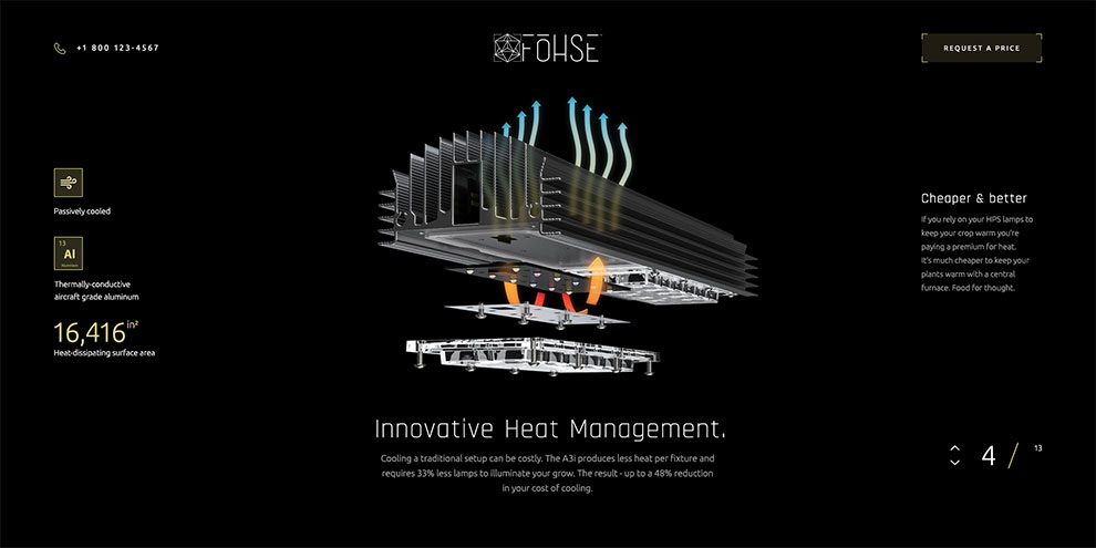 FOHSE's latest product, the A3i was designed for commercial cannabis growth that require efficiency, low heat output, and powerful levels of PPFD.