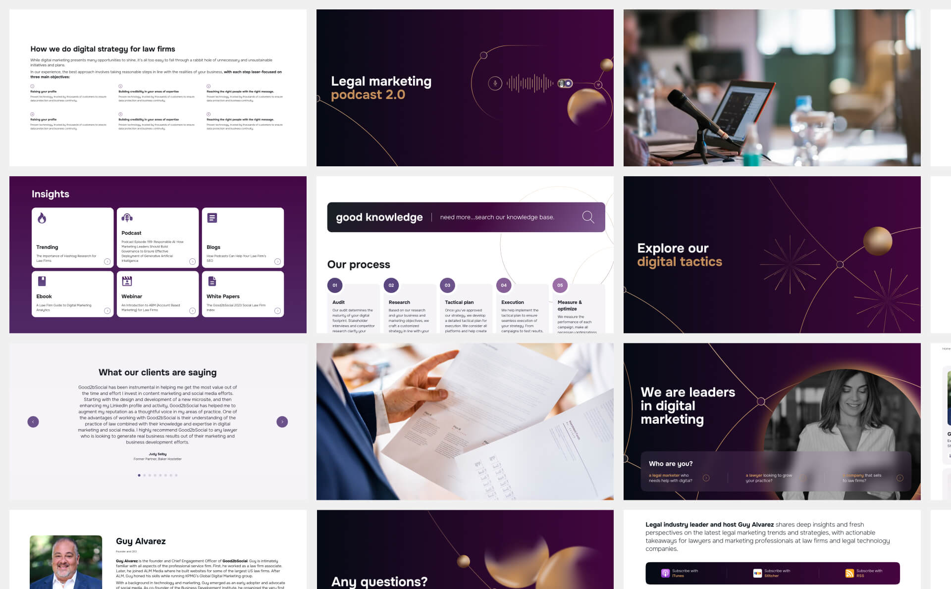 The brand refresh was a pivotal aspect of the project. The new brand identity reflects Good2bSocial’s position as an innovative leader in digital marketing for the legal industry. This was achieved through a refreshed logo, updated brand guidelines, and a visual identity that conveys professionalism and expertise.