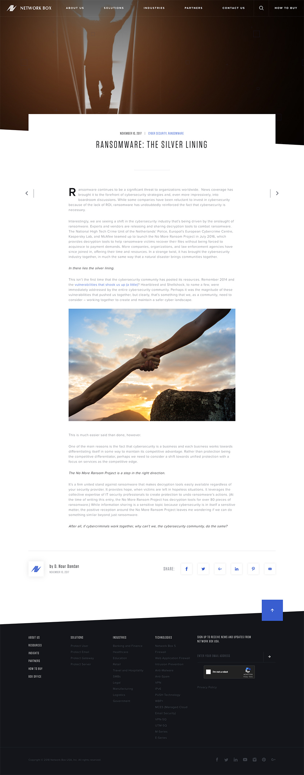 Network Box provides world class managed security services including monitoring, threat analysis, bandwidth management, licence management, change control, and load balancing. As the managed security vertical has transitioned from hardware to software and services, Network Box needed a partner to redesign their website to present a new face to the world. Big Drop was excited to be a part of the project.
